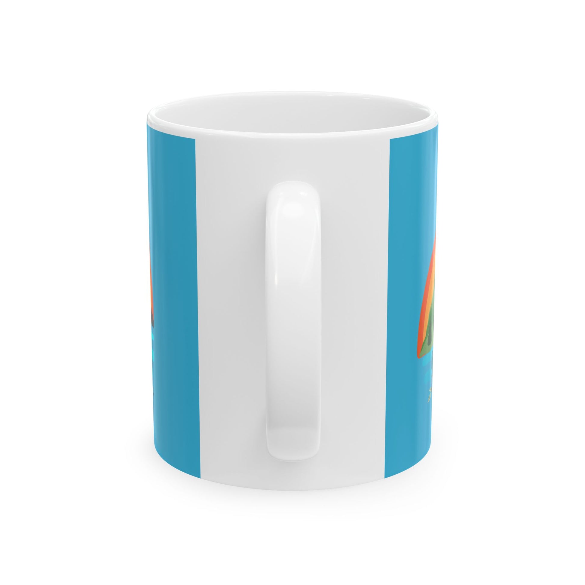 Bright, beachy ceramic mug that brings island mornings to your countertop. The wraparound design features sun-soaked silhouettes—palm trees, a green hillside, and playful seaside lettering—set against a vivid turquoise background. Every sip feels like a short escape: warm light, salt air, and a laid-back rhythm. Lightweight enough for day-to-day use, yet bold enough to lift your mood on slow mornings or busy workdays. It complements a creative, travel-loving routine and slips easily into casual gatherings, sunrise coffee rituals, or late-night planning sessions.